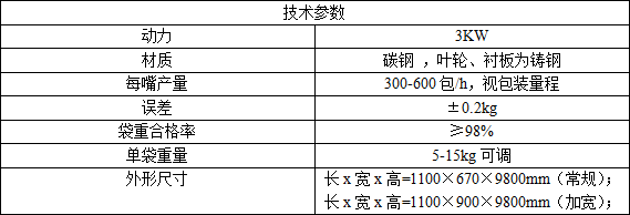 MGX-515型小劑量定量包裝機一種集微電腦控制、稱重傳感、螺旋傳動、氣動執(zhí)行于一體的高新技術(shù)小劑量包裝設(shè)備。包裝量程通常為5-15Kg。通過變頻器的控制,該機可實現(xiàn)物料的快加慢加功能,計量精準,操控便捷,運行可靠,占地小,無噪音。全封閉式物料輸送回路,加上獨特的收塵口設(shè)計,確保物料包裝過程安全環(huán)保無泄漏,達到綠色生產(chǎn)、生態(tài)生產(chǎn)新標準。該機適用于包裝流動性一般的粉體或細顆粒物料,如:化工粉劑、食品粉劑、淀粉、飼料、肥料粉劑、粉粒狀添加劑等物料。技術(shù)參數(shù):
