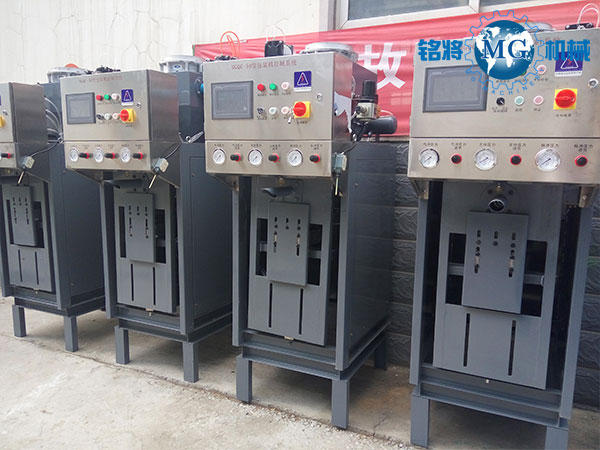 氣吹式包裝機專業用于干粉砂漿的自動定量包裝,引進歐洲專業技術,具有結構先進、設計合理、密封性好,外觀美觀、綠色節能的特點。通過巧妙精密的設計使該機幾乎沒有機械磨損,另外計量精度可靠(±200g),產出率高,每小時可包約400包。由于采用新型等高壓全吹氣裝置,砂漿包裝后不離析,無殘留。本機電氣控制采用智能繼電器和智能儀表控制器來進行控制,高效穩定易操作。電壓采用交流220V和直流24V控制。該生產線可生產堆比重較大的粉粒混合或粒料狀物料。如:干粉砂漿系列產品、重晶石、石英砂、焦寶石、各種耐火材料。